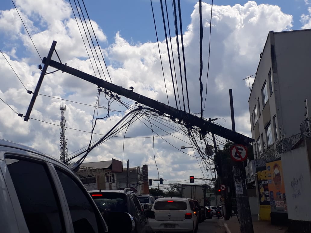 Poste cai em frente ao Instituto São José, deixa parte do Centro sem energia e causa congestionamento