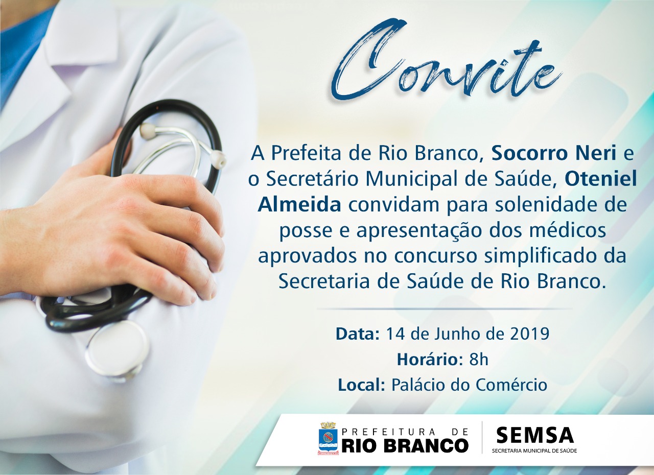 A Prefeitura de Rio Branco realiza nesta sexta-feira, 14 de junho, às 8h, a posse e apresentação de 34 profissionais médicos aprovados em concurso público simplificado realizado este ano pela gestão municipal.