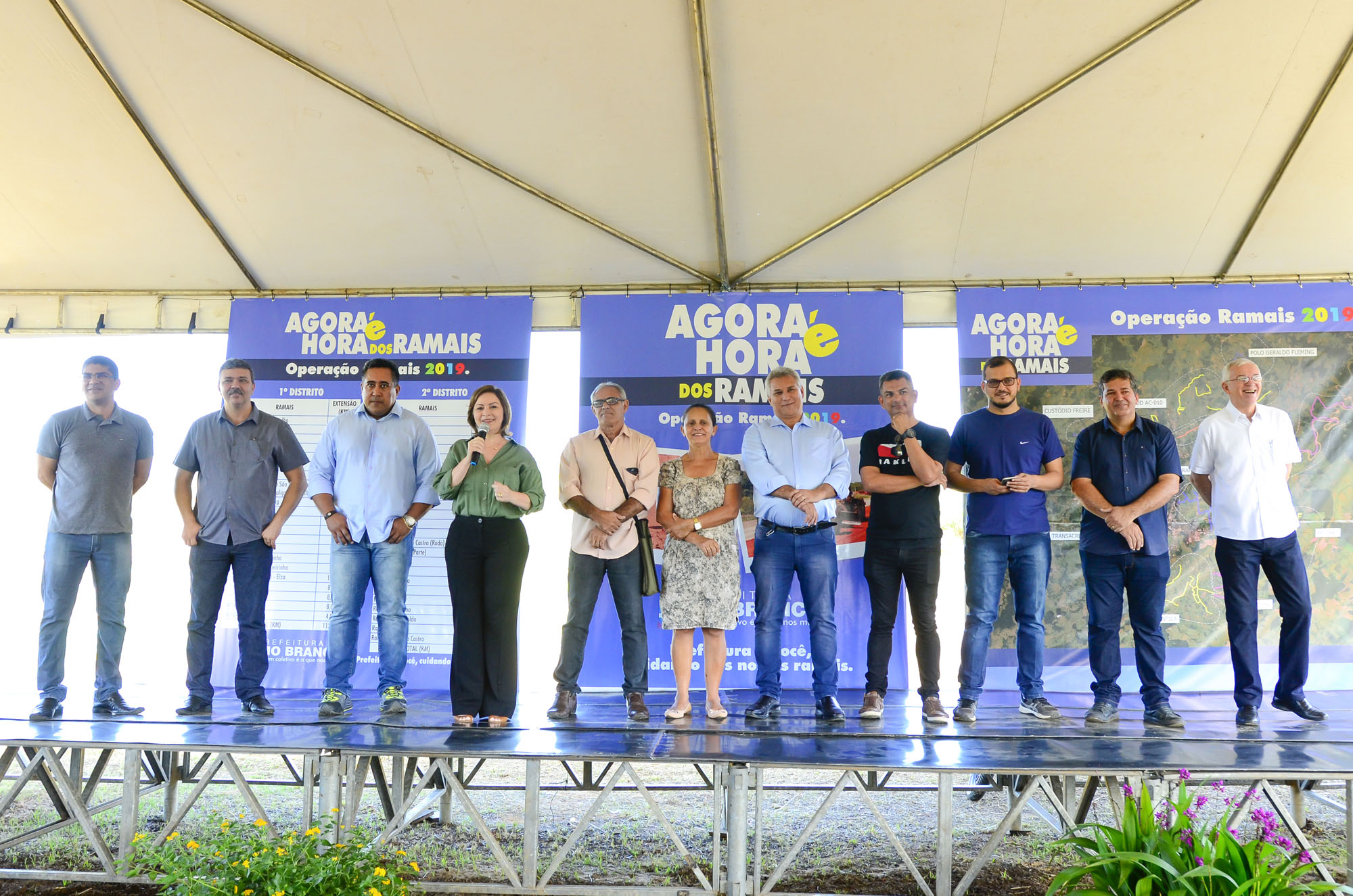 Trabalhadoras e trabalhadores rurais comemoraram nesta sexta-feira, 7, o início da operação de recuperação de ramais no município de Rio Branco. O lançamento da ação foi realizado pela prefeita Socorro Neri na manhã de hoje no pátio da Central de Abastecimento (Ceasa), com a participação de dezenas de produtores, líderes de movimentos comunitários, vereadores e população da cidade.