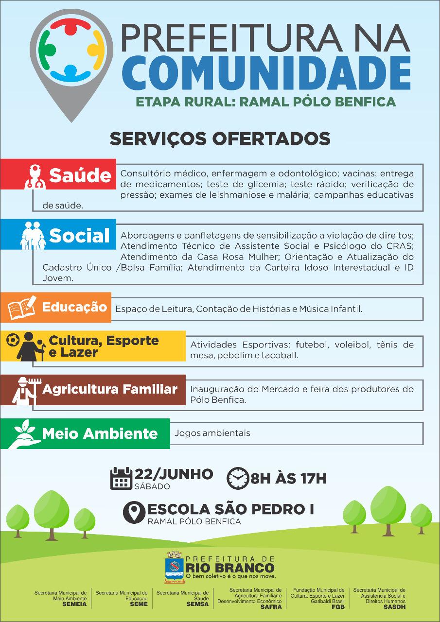 A Prefeitura de Rio Branco, inicia no próximo sábado, dia 22 de junho, mais uma edição do programa Prefeitura na Comunidade.
