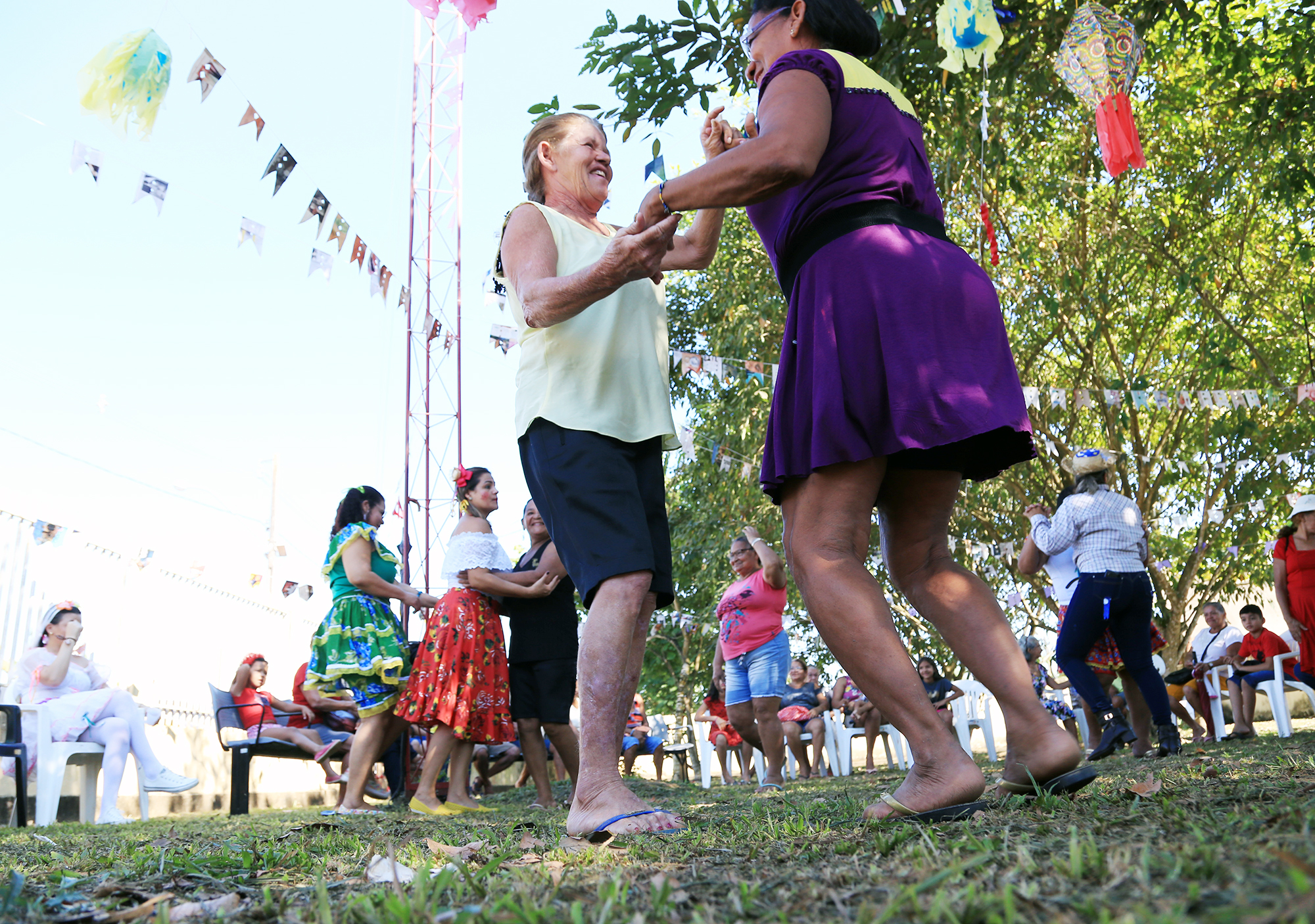 “Eu acho muito legal. No seringal, sabe? Eu era um Apuí. Era gabado, vixe Maria. Agora tô destreinado, o joelho já não ajuda. Eu acho bom, acho bonito”, completou Roberto Augustinho Felipe, de 76 anos, referindo-se ao ‘Arraial da Melhor Idade’ promovido pela Unidade Básica de Saúde da Família Antenor Francisco Ramos.