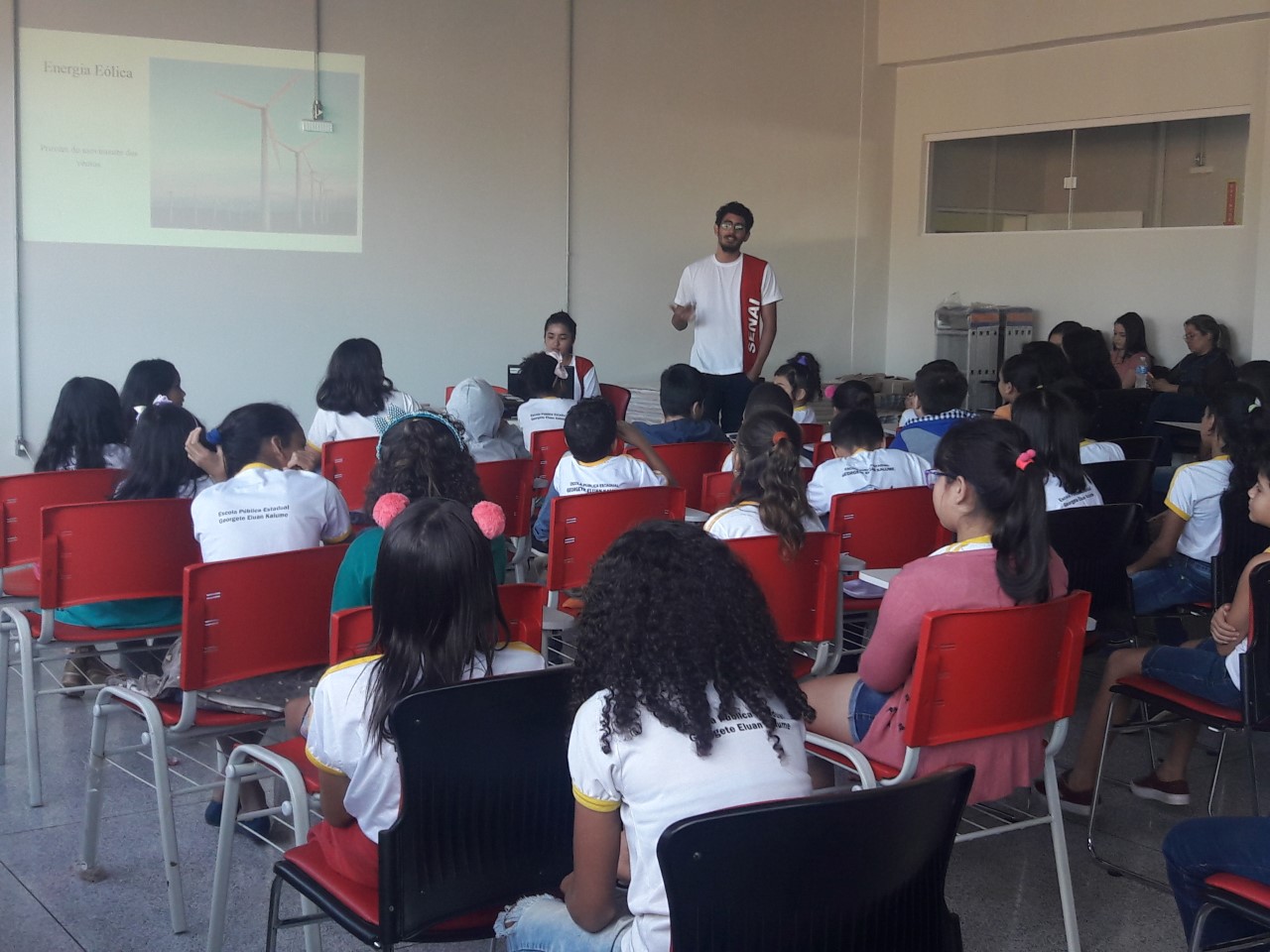 Minicursos de editor de texto e internet, palestras sobre os perigos ao navegar na internet (redes sociais, amizades virtuais, canais livres de relacionamento) e economia e cuidados básicos da eletricidade nas residências, além da instalação de sirene escolar automatizada e de sensores de presença nos banheiros. Essas foram ações realizadas durante o início do mês de junho por alunos e instrutores da Escola SENAI Cel. Auton Furtado, no âmbito do programa nacional Circuito SENAI Indústria e Sociedade, na Escola de Ensino Fundamental Georgete Eluan Kalume, localizada no mesmo bairro da instituição, Cadeia Velha.