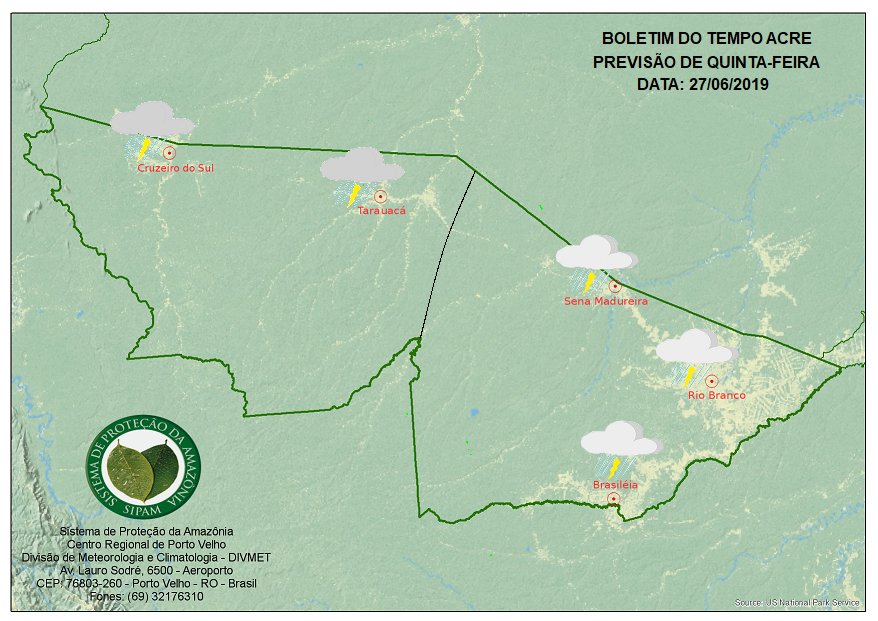 No Acre, a quinta-feira (27) será de atmosfera instável, segundo o Sistema de Proteção da Amazônia (Sipam). Muitas nuvens deverão se formar deixando os céus nublado durante todo o dia com temperaturas amenas.