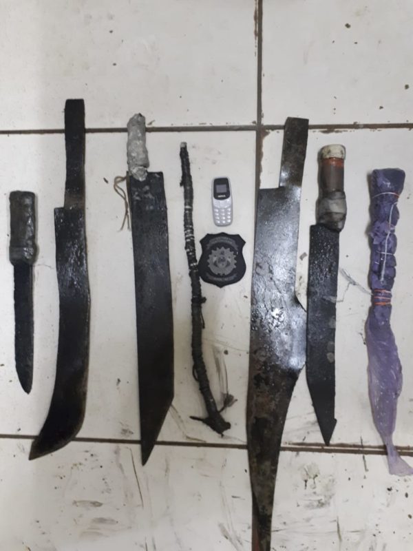 Com relação as armas artesanais apreendidas, a coordenação de segurança afirma que foram fabricadas da grade da porta das celas.
