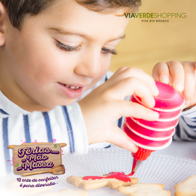De 20 a 28 de julho a criançada poderá se divertir e explorar a imaginação ao participar da oficina de confeitaria em biscoitos e bolachas, no Via Verde Shopping. O evento ocorrerá no tablado em frente ao cinema por meio de parceria com Biscoitos Miragina, Guaraná Cruzeirense e Dan Juan Churros.