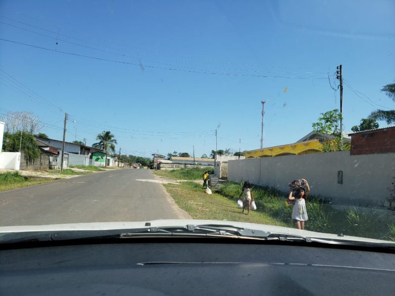 As crianças estavam carregando sacolas plásticas cheias de resto de comida e alguns objetos que cataram nas caixas de lixo do bairro do Bosque.