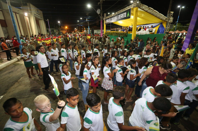 Desde o palanque, montado na praça Hugo Poli, ele assistiu ao desfile ao lado de autoridades estaduais, municipais, militares e bolivianas, voltando a frisar que a ‘bandeira’ do seu governo é a Bandeira Acreana, enquanto que a logomarca é o Brasão.