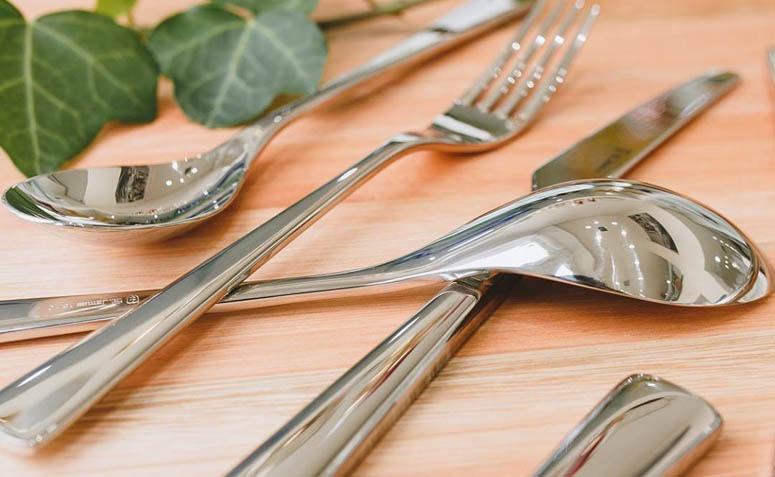 Um faqueiro completo é essencial: tenha facas e garfos de mesa, facas e garfos de sobremesa, colheres de sopa, colheres de sobremesa e colheres de chá.