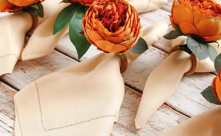 Os guardanapos devem ser preferencialmente de tecido, assim a composição fica muito mais elegante. Podem ser combinados com anéis que são utilizados para prender a peça e adicionar um detalhe a mais para a mesa.