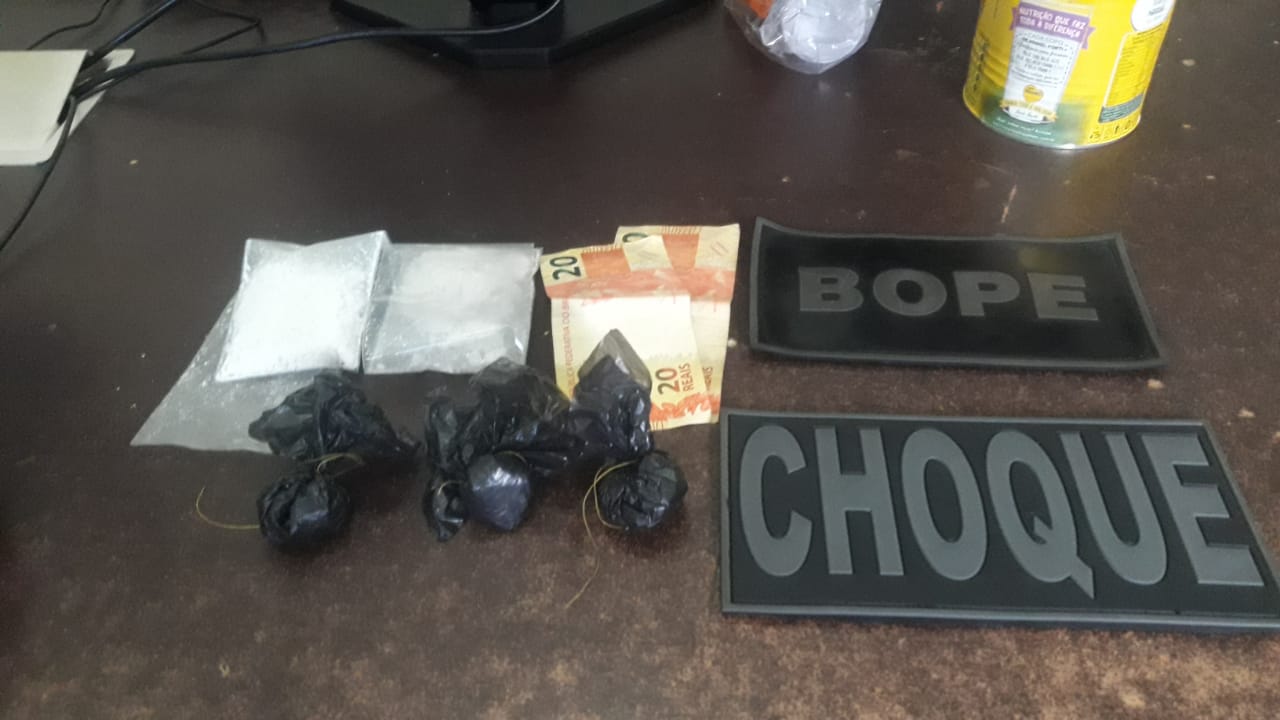 Durante a abordagem encontraram dois pacotes contendo uma substância que aparenta ser cocaína e três trouxinhas com a mesma substância. Os três suspeitos foram levados para a Delegacia Central de Flagrantes.