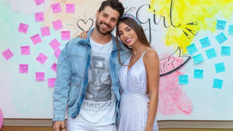 Alok, 27, e Romana Novais, 27, fizeram um chá revelação na tarde desta quinta-feira (15) e descobriram que o primeiro filho do casal será um menino.
