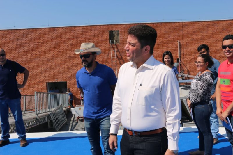 Acompanhado pelo diretor Welber Lima, o secretário de Infra Estrutura Thiago Caetano e o secretário Institucional, Alysson Bestene, Gladson conversou com operários, percorreu as UTIs, e esteve no heliponto, local já preparado para o pouso do helicóptero do estado.