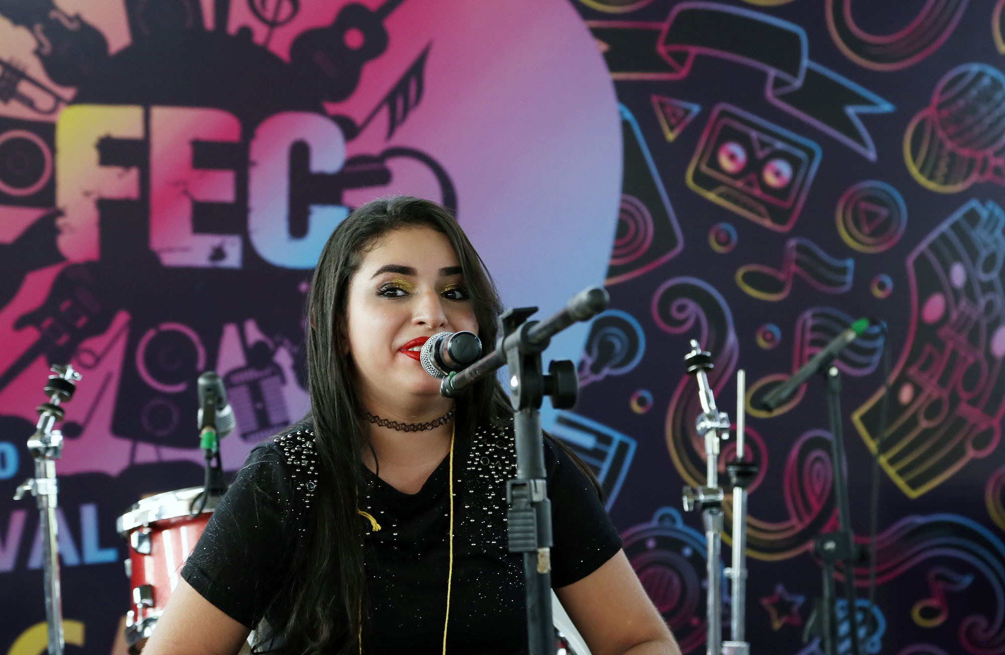 Quando a primeira candidata da 2ª Etapa do Festival Estudantil da Canção (FEC) começou a cantar na tarde desta sexta-feira (16), a quadra da Escola Armando Nogueira foi tomada por uma contagiante onda de emoção. Amanda Gabrielli, de 17 anos, superou suas necessidades especiais para subir ao palco e encarar o público ao interpretar a música “Raridade” diante dos jurados.