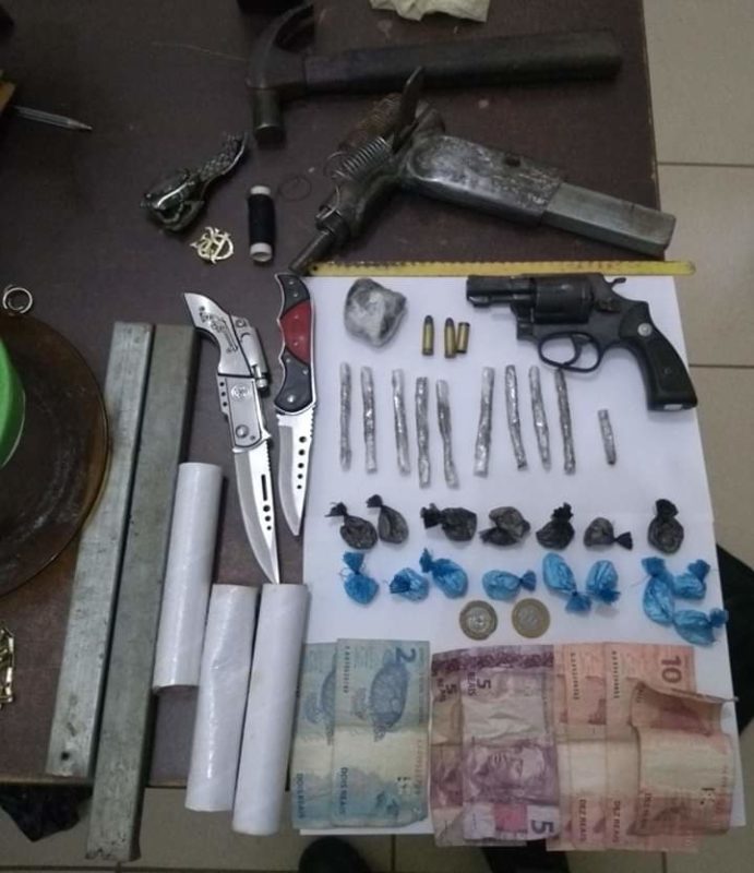 A polícia apreendeu nesta quinta-feira (1), um revólver calibre .32, trouxinhas de cocaína, tabletes de maconha e dinheiro durante uma ação no bairro Wanderley Dantas, parte alta de Rio Branco.