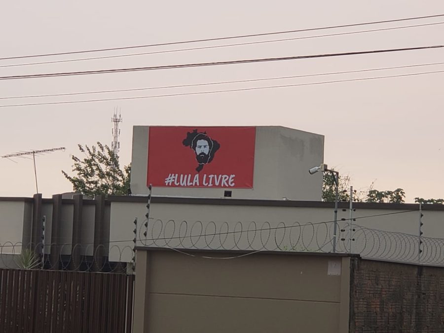 O banner, que deve medir uns quatro metros de largura, estampa o rosto do presidente e o mote “Lula Livre”, usado extensivamente pelas pessoas que acreditam que a prisão do ex-presidente é política.