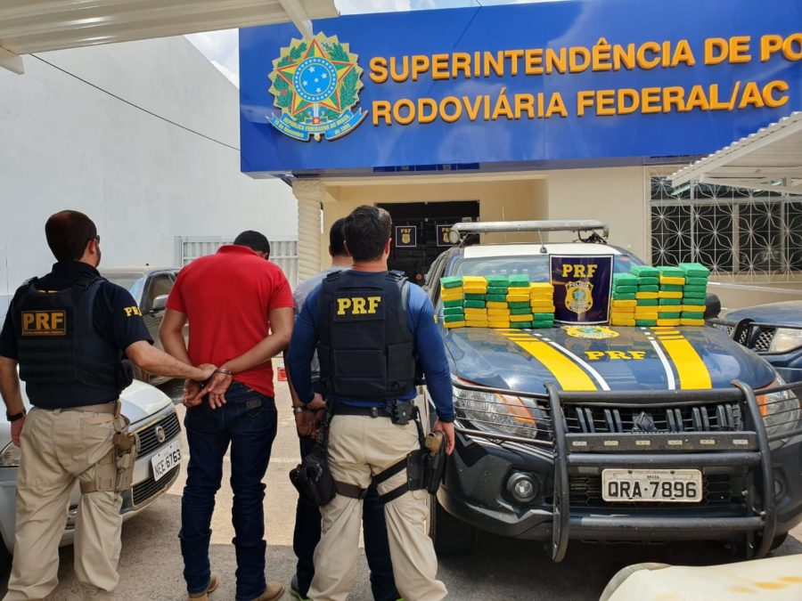 Os dois homens foram presos pela Polícia Rodoviária Federal (PRF) na manhã desta sexta-feira (20) durante uma abordagem no km 99 da BR-317. Com a dupla, a polícia encontrou 65 kg de cocaína.