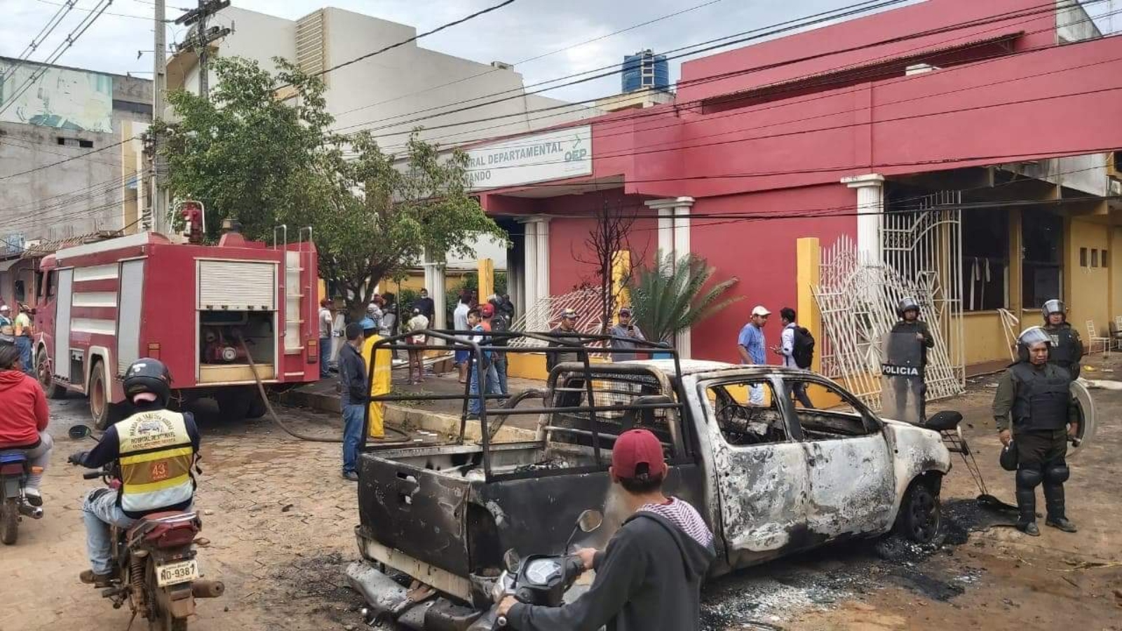 O amanhecer desta terça-feira em Cobija revelou o tamanho do estrago. Durante a noite anterior, o prédio da Corte Eleitoral do Estado foi invadido e parcialmente incendiado. Também foram queimadas caminhonetes, equipamentos eletrônicos e móveis.