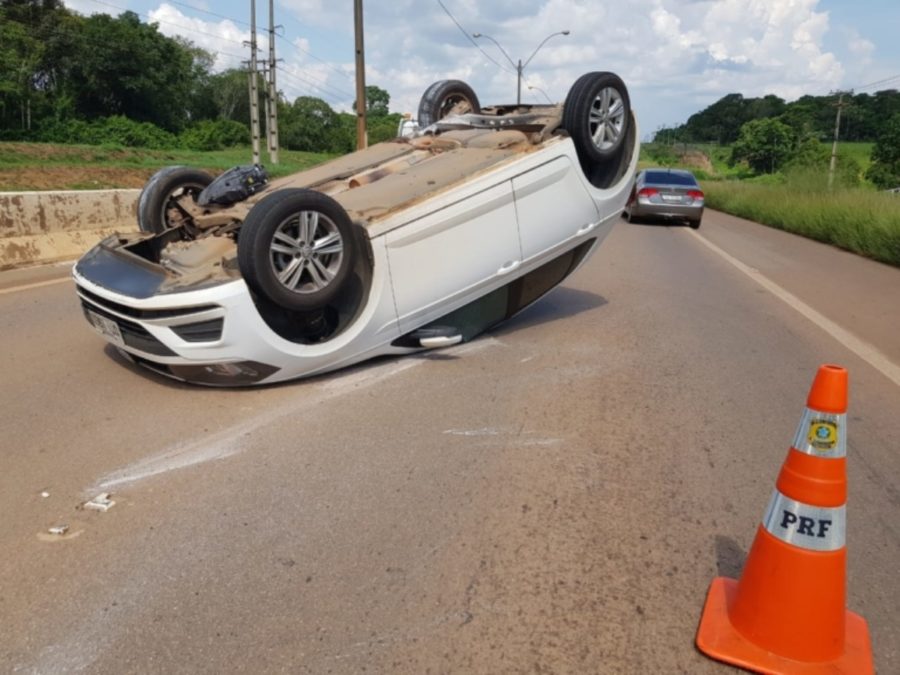 Na tarde desta quinta-feira (31), a Polícia Rodoviária Federal fez o registro de um grave acidente de trânsito com capotamento no Km 8 da BR 364, sentido ao Município de Candeias do Jamari.