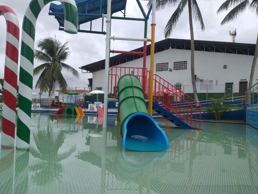 O local também dispõe de uma piscina de mais de 1,70 metro para os adultos usufruírem da rampa aquática.”Serão sete bimbas derramando água para uma diversão segura”, declarou.