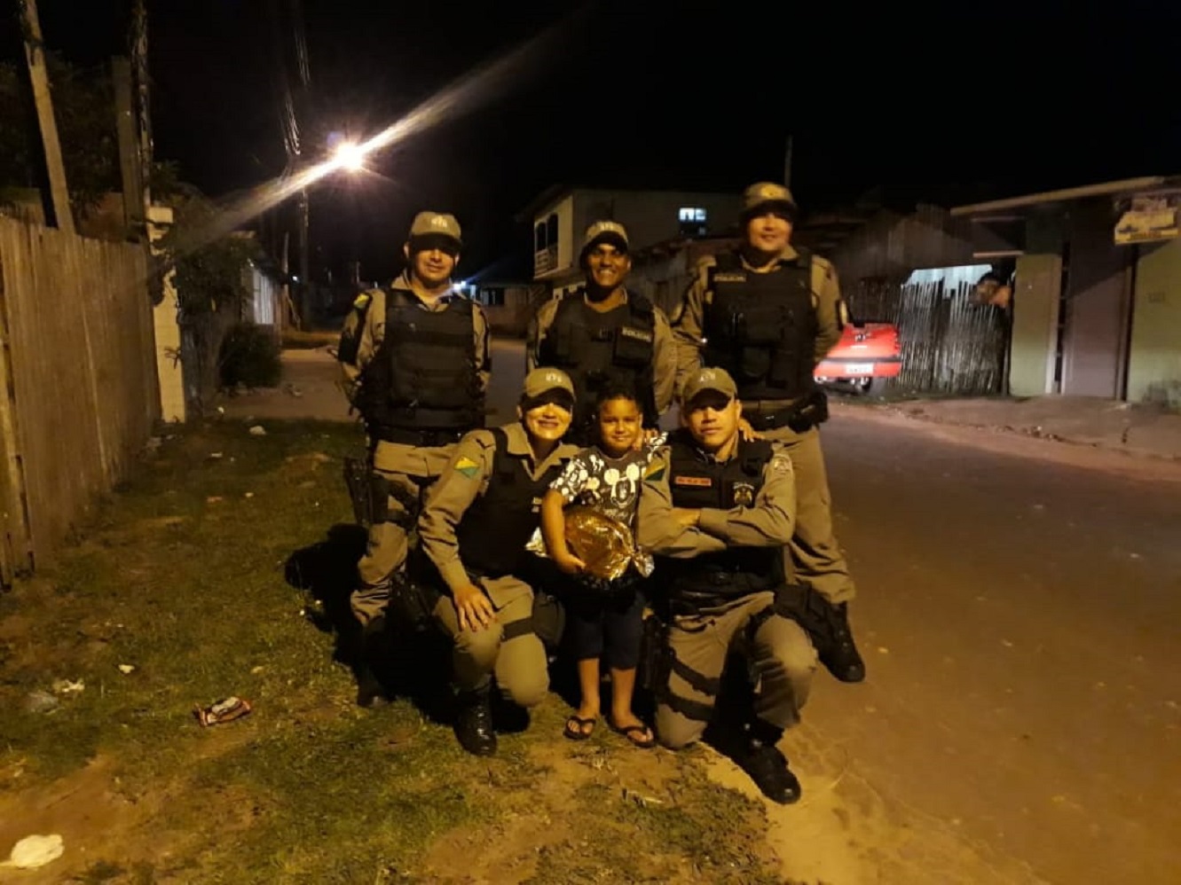 Em CZS, PMs fazem surpresa para criança aniversariante e realizam sonho