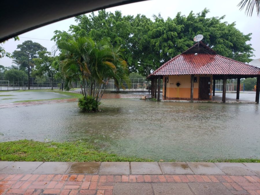 A forte chuva que atingiu grande parte do estado na manhã desta sexta-feira (15), deixou vários pontos da cidade de Rio Branco com muita água pelos córregos e ruas.