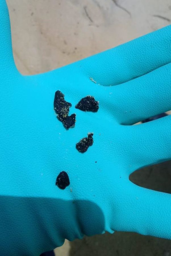 Fragmentos de óleo recolhidos em praia de São João da Barra, no RJ, — Foto: Divulgação/Marinha do Brasil