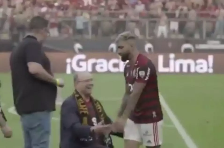 Após o placar de 2 a 1 contra o River Plate e vitória histórica do Flamengo na final da Copa Libertadores, o governador do Rio de Janeiro, Wilson Witzel, se ajoelhou diante do atacante Gabigol no gramado do Estádio Monumental de Lima, no Peru, em reverência. Mas o jogador não pareceu ligar para a atitude.
