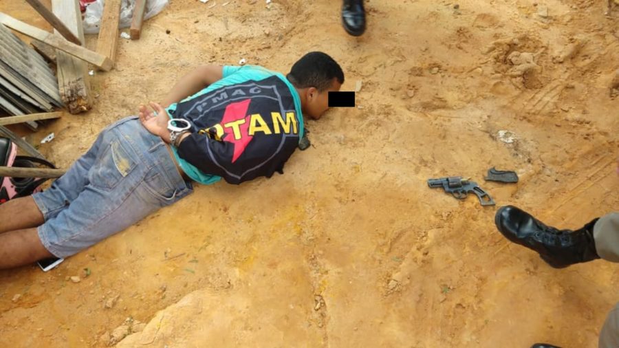 Pedro Igor da Silva Oliveira, 28 anos, e Moisés Nascimento Cassiano, 18 anos, foram presos por porte de arma de fogo ilegal e por recepção de motocicleta roubada, na tarde de sábado (9), no Bairro do Remanso, no município de Cruzeiro do Sul, no interior do Acre.