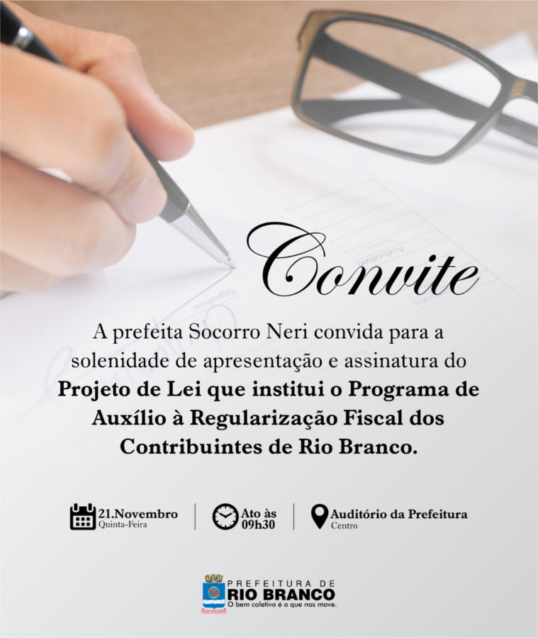 O Projeto de Lei será assinado e encaminhado à Câmara Municipal para votação, ainda nesta quinta. A assinatura será realizada no auditório da Prefeitura, no Centro de Rio Branco, às 9h30h.