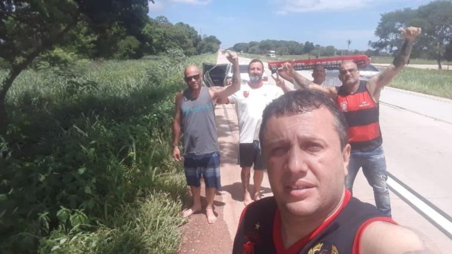 “Conseguimos juntar o dinheiro para pedágio e combustível. Vamos nos revezando e a ideia é só parar quando não tiver jeito e o cansaço bater mesmo. Queremos fazer de 1,5 mil a 2 mil quilômetros por dia”. Dos cinco rubro-negros, apenas Cesar e Celso ainda não têm ingressos para a decisão. No decorrer do caminho, aproveitam os momentos em que há sinal de internet no celular para tentar garantir as entradas. Caso não tenham sucesso, “vão tentar um jeito em Lima”. Na mala do carro, além dos mantimentos, uma mochila de cada um do grupo com algumas poucas peças de roupas e, claro, camisas do Flamengo.