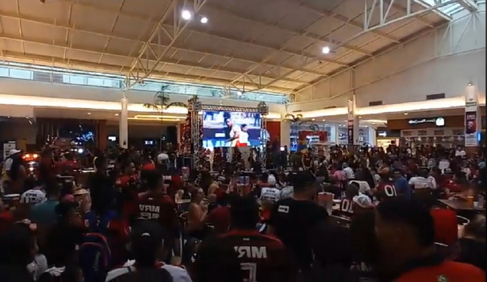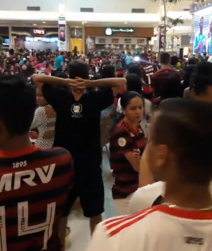 A tarde deste sábado (23) está tomada por torcedores que foram acompanhar em um telão montado, a final da Copa Libertadores da América, entre Flamengo e River Plate, em Lima no Peru. Segundo informações da segurança do local, mais de 2 mil pessoas estão na praça de alimentação do Via Verde Shopping.