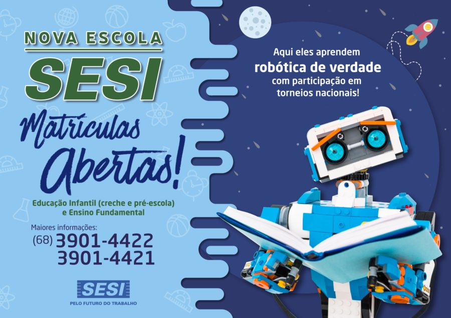 Referência no ensino de empreendedorismo, robótica e outras disciplinas inovadoras, a nova Escola SESI está com matrículas abertas para o ano letivo de 2020 em Rio Branco. A instituição oferece vagas para Educação Básica, Educação Infantil (creche e pré-escola) e Ensino Fundamental.