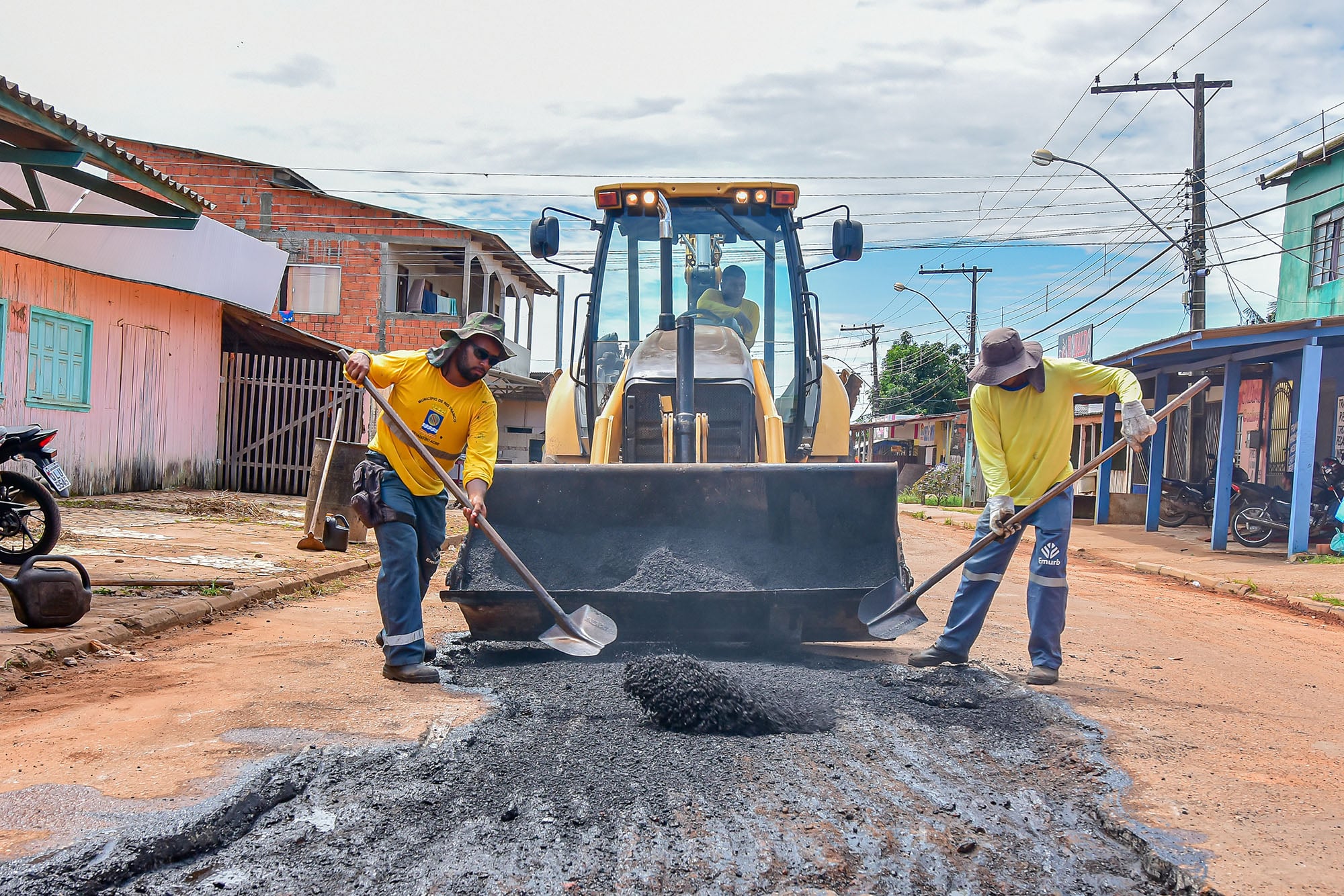 Nesta sexta-feira, 3, trechos da Rua Antônio Pessoa Jucá, que liga os bairros Tancredo Neves, Montanhês e Caladinho, receberam asfalto quente na recuperação do pavimento.