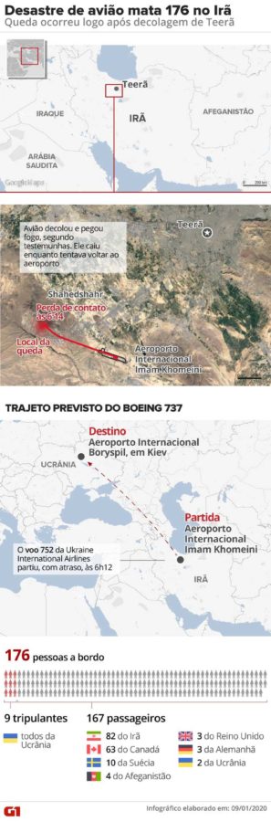 Todos os 176 ocupantes do avião morreram. No sábado, após dias afirmando que a queda havia sido acidental, as autoridades iranianas assumiram que seus militares derrubaram sem intenção o voo 752 da Ukranian Airlines, que ia de Teerã para Kiev.