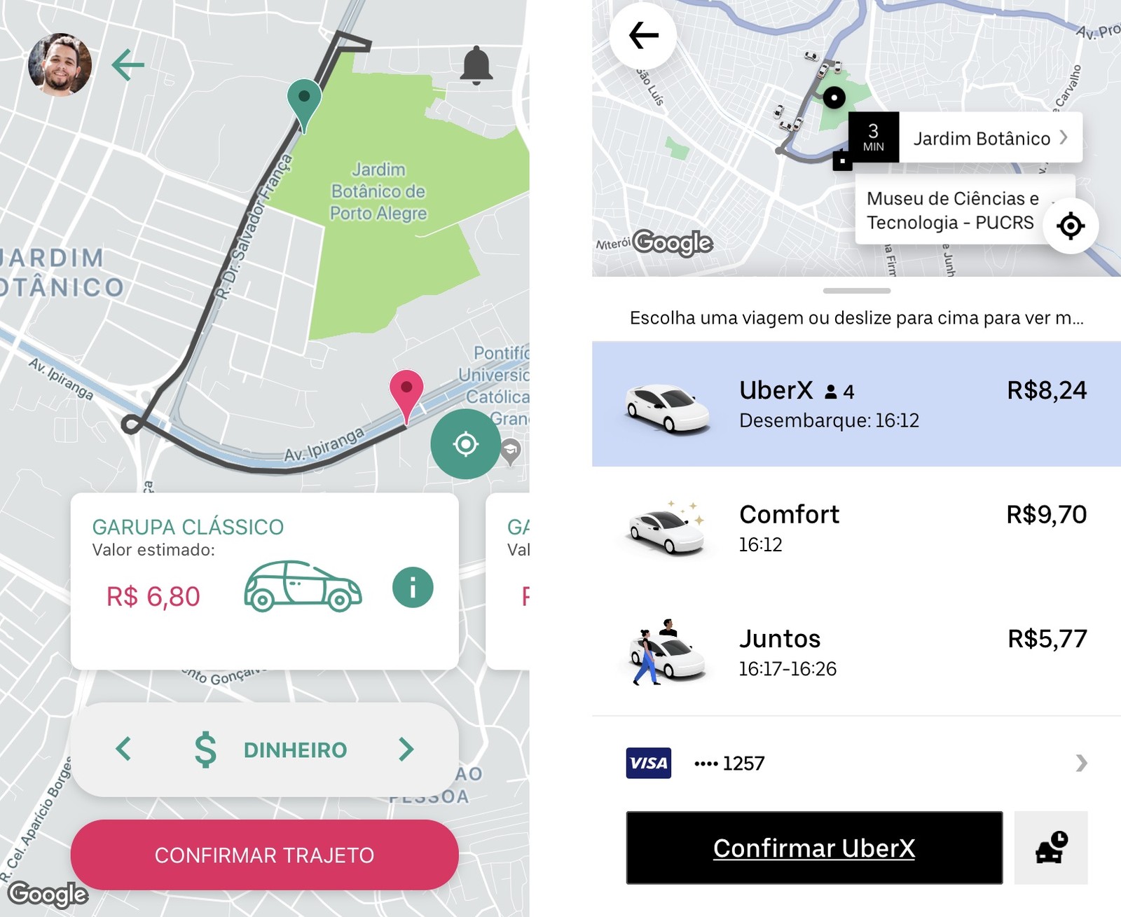 Em um teste realizado pelo TechTudo, uma previsão de viagem no Garupa com partida do Jardim Botânico de Porto Alegre ao Museu de Ciências e Tecnologia (PUCRS), com cerca de 2,7 km de distância, apresentou um valor um pouco mais barato do que pelo Uber, quando comparadas as modalidades mais básicas, no mesmo horário e sem tarifa dinâmica.