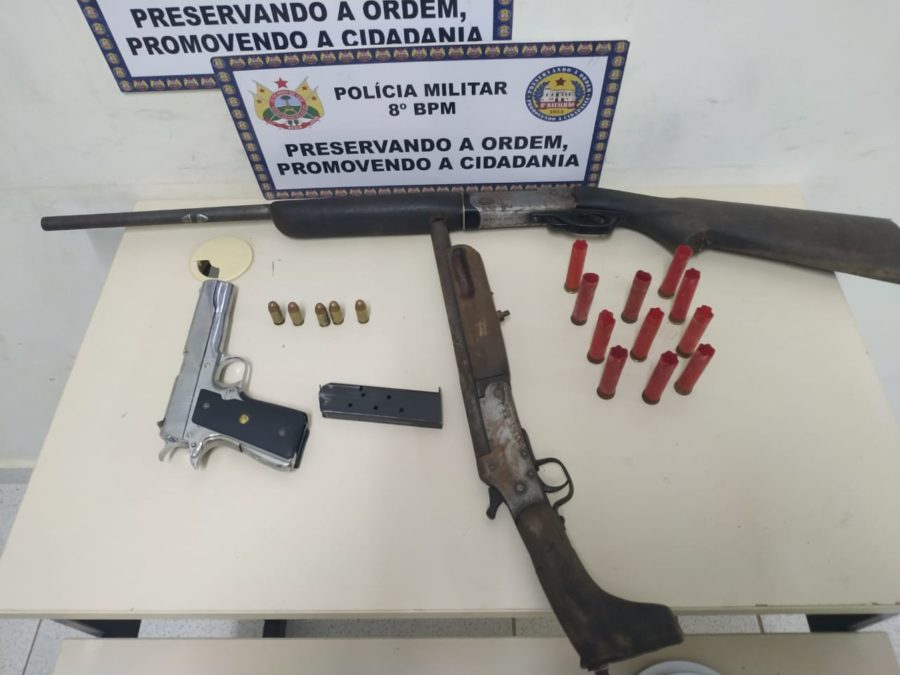 Com o grupo, as forças policiais apreenderam uma pistola ponto 45, de uso restrito, uma espingarda e uma escopeta, com muita munição. Em outras duas ações, a polícia localizou um revólver no bairro da Pista e outro no bairro da Vitória, totalizando 5 armas de fogo apreendidas.