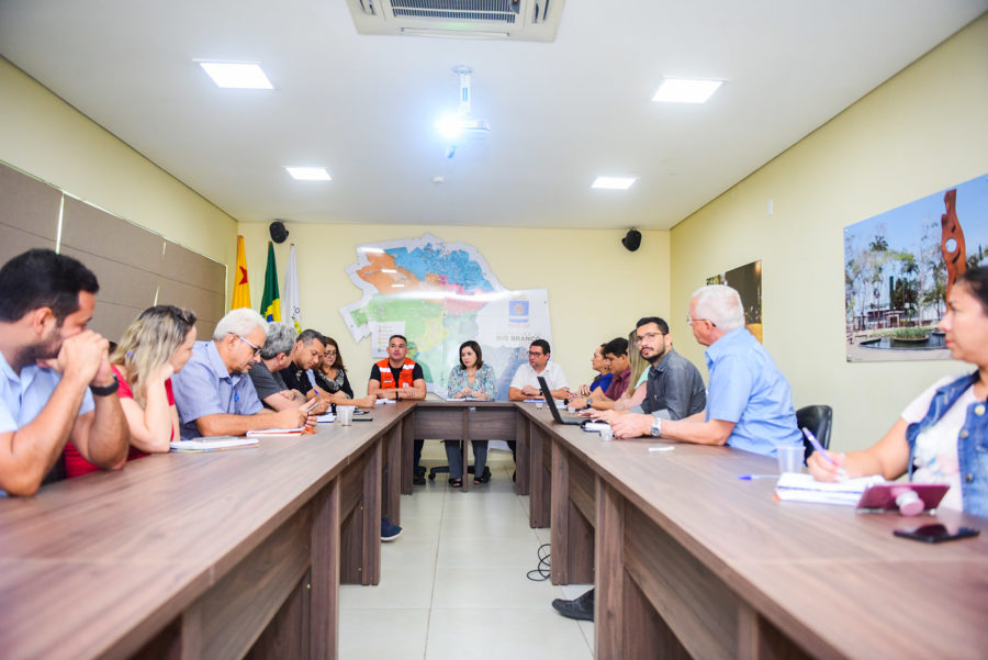 Em reunião na sede da Prefeitura de Rio Branco a prefeita Socorro Neri definiu junto com a equipe, estratégias para agilizar o tempo de resposta do Município às famílias atingidas pela cheia do Rio Acre, que, atingiu nesta sexta-feira (10) 14,42m na avaliação das 6 horas. Dez famílias precisaram da assistência do Município e foram encaminhadas para casa de parentes pela Defesa Civil municipal.