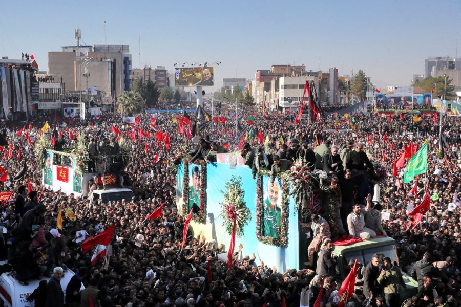 No domingo (5), o corpo seguiu para o Irã. O cortejo começou pela cidade de Ahvaz, no sudoeste do país, passou por Mashhad, na região nordeste, e seguiu para Teerã. Na capital iraniana, o líder supremo do Irã, o aiatolá Ali Khamenei, chegou a chorar durante uma homenagem a Soleimani.