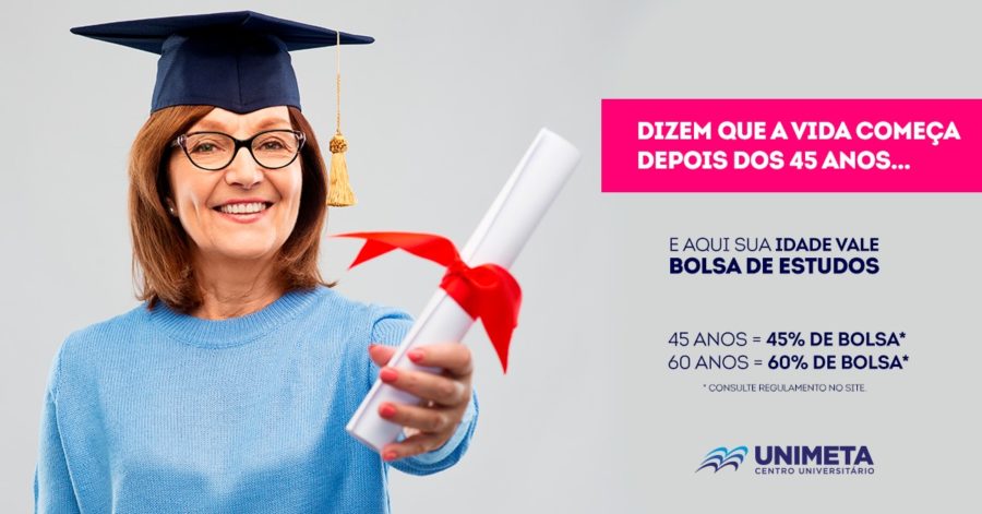 Mas atenção. O acadêmico permanecerá com a mesma porcentagem de desconto até a conclusão do curso. O desconto não aumenta conforme a idade do estudante.
