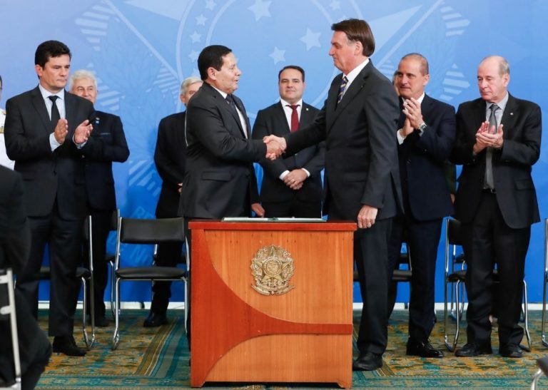 O presidente Jair Bolsonaro assinou nesta terça-feira (11), em cerimônia no Palácio do Planalto, um decreto para transferir o Conselho Nacional da Amazônia Legal do Ministério do Ambiente para a Vice-presidência.