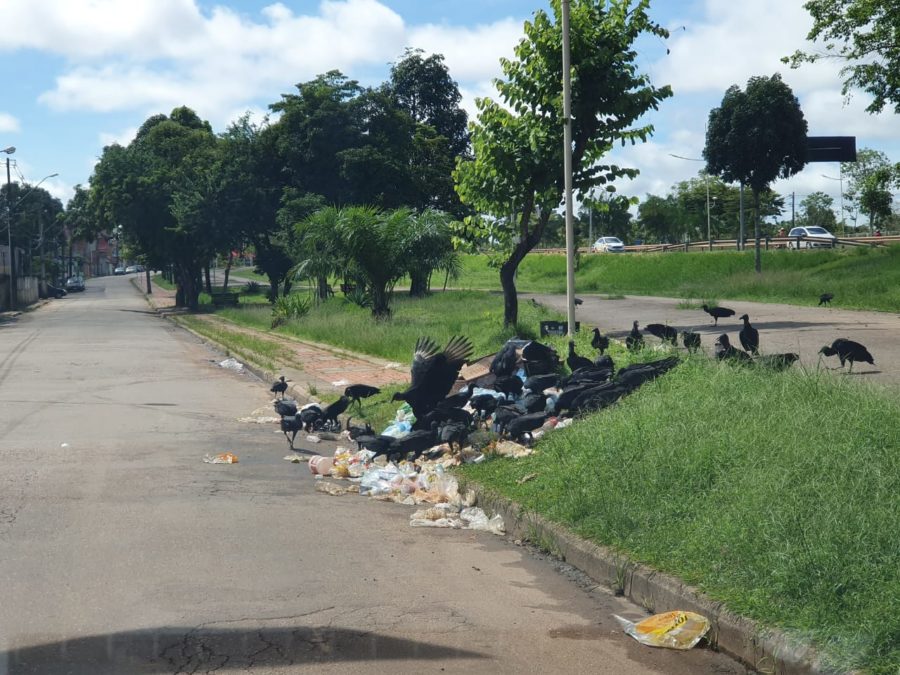 Pela manhã, vários urubus rasgavam os sacos de lixo e espalhavam a sujeira pela calçada, jardim e rua. A presença dos animais no local também atrapalha os condutores de veículos. A moradora do entorno reclamou ainda do mau cheiro deixado pelo entulho e disse que essa não é a primeira vez que o problema acontece naquela localidade.