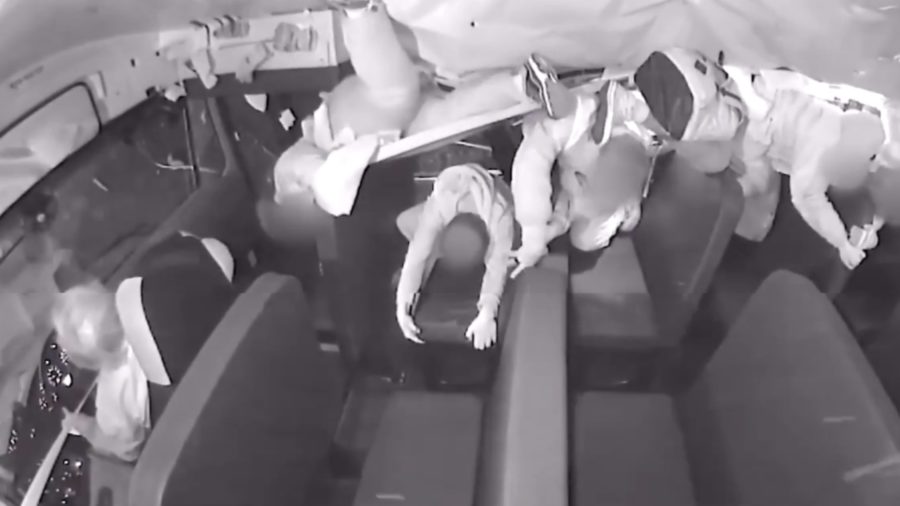 O ônibus tinha 25 estudantes a abordo quando bateu em um Ford Mustang 1996 que não parou no sinal vermelho de um cruzamento. O vídeo mostra as crianças voando dos bancos e gritando por socorro.