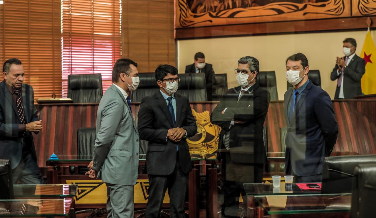 Na manhã desta sexta-feira (20) os deputados estaduais decidiram comparecer à sessão devidamente protegidos com máscaras e álcool gel, no plenário da Assembleia Legislativa do Acre (Aleac).