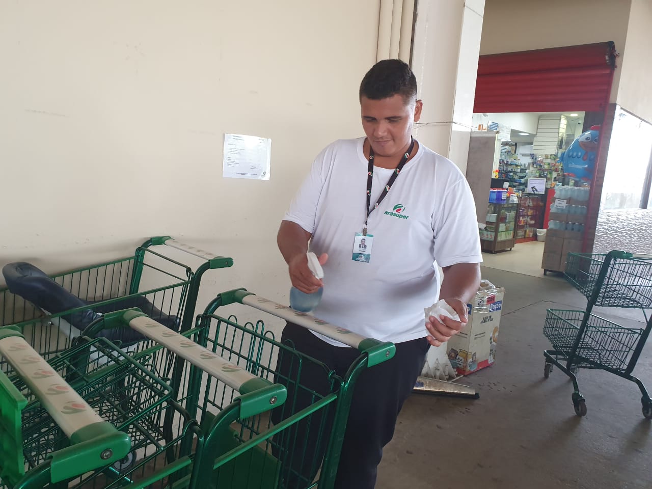 Direção do Arasuper determina que carrinhos sejam limpos com álcool em gel