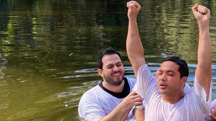 “Reafirmando que a minha vida é de Jesus e que a cada dia quero a vontade d’Ele pra mim e minha família! Já fui batizado nas águas, mas aqui tivemos esse momento simbólico para entrar nas mesmas águas onde Jesus foi batizado por João Batista!”, escreveu o cantor, ao publicar uma foto revivendo esse ato de fé.