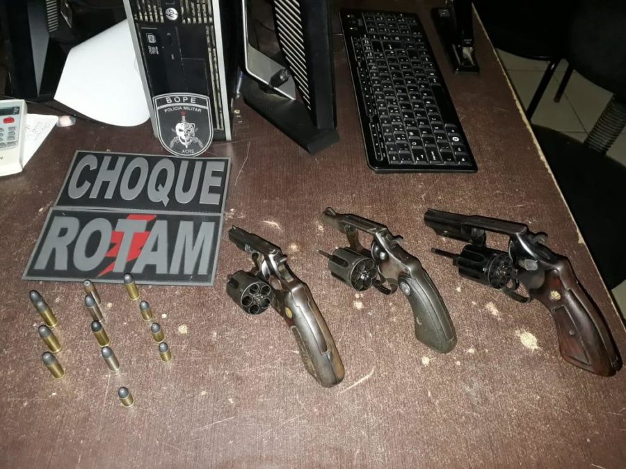 Depois de serem flagrados, os indivíduos foram perguntados sobre as armas e o táxi, e acabaram confessando que realmente estavam envolvidos no roubo do veículo e entregaram as armas de fogo que estavam no interior da residência, sendo 3 revólver de calibre 38 com 13 munições intactas, e disseram que o táxi estava na rua de trás.