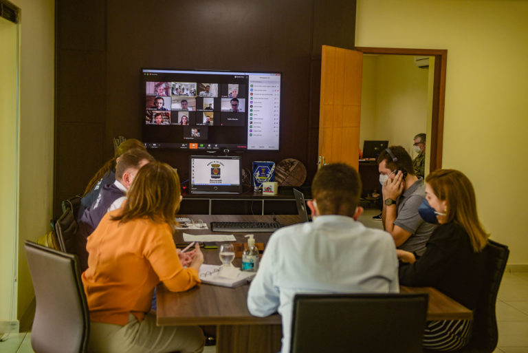 A prefeita Socorro Neri, o governador Gladson Cameli, a reitora da Universidade Federal do Acre (Ufac), Guida Aquino, e representante do Conselho Regional de Medicina, participaram no fim da manhĂŁ desta quarta-feira, 22, de uma videoconferĂȘncia de monitoramento e alinhamento das açÔes de combate ao novo coronavĂrus.