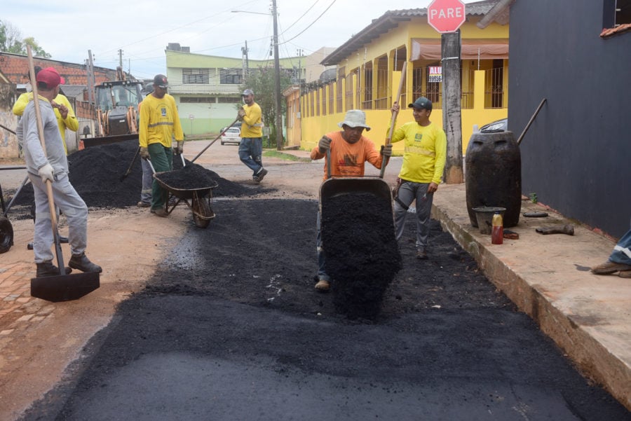 Eduilson Rocha enfatizou a importância da recuperação das ruas dos 18 bairros contemplados, com pavimentação asfáltica, esta semana. O trabalho da prefeitura recebe apoio da comunidade.