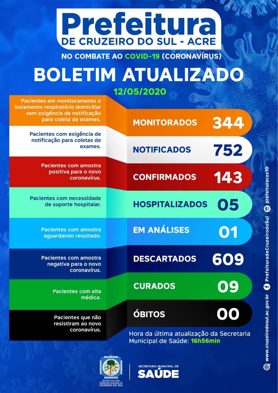 Na tarde de terça-feira (12) Secretaria Municipal de Saúde de Cruzeiro do Sul informou que o município teve 19 novos casos confirmados de covid-19 em 24 horas.