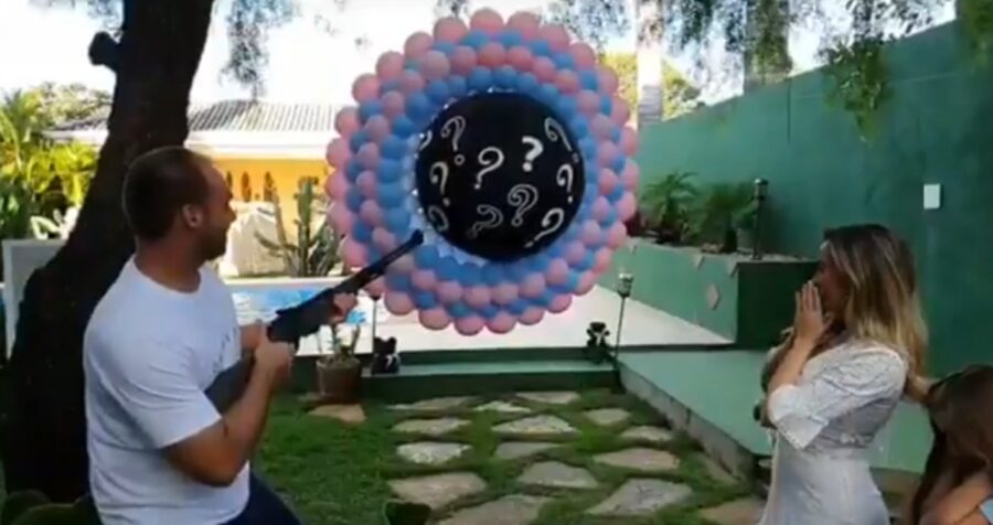 Na ocasião, ele pegou uma arma gigante e explodiu o balão que mostrava a cor rosa, indicando que terá uma criança do sexo feminino. O vídeo foi postado em seu próprio perfil no Twitter e ele foi detonado pelos seguidores, por conta de sua postura agressiva.